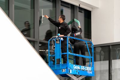 Our Commercial window cleaning is a professional service focused on cleaning and maintaining the windows of commercial and business establishments. This service involves the use of specialized equipment, such as squeegees, cleaning solutions, and water-fed poles, to ensure thorough and streak-free cleaning of windows, both interior and exterior. Commercial window cleaning is essential for maintaining a clean and professional appearance of the building, enhancing natural light penetration, and promoting a positive image for businesses. Professional window cleaners are trained to handle various types of windows, including high-rise buildings, and adhere to safety standards to deliver a pristine and polished result.